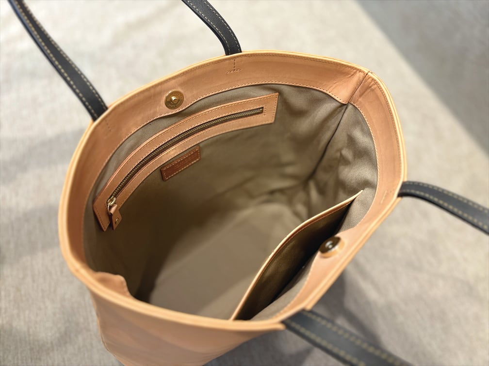 このトートは、職人の手作業によって丁寧に作られています。自然な素材感と高い耐久性を兼ね備え、長くご愛用いただけます。一つ一つの製品には職人の思いと技がこめられており、特別な一品となっています。ヌメ革の風合いと独特のエイジングは、使い込むほどに深まります。愛着が湧き、長く使い続けるほどに味わい深くなります。自分へのご褒美や大切な方へのギフトとして、ぜひご検討ください。